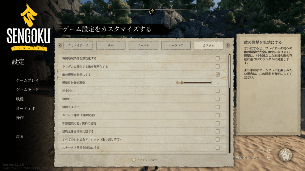 のんびり遊びたいというかたは、襲撃イベントをオフにすることも可能。